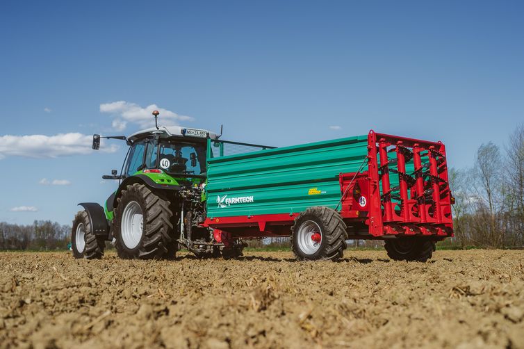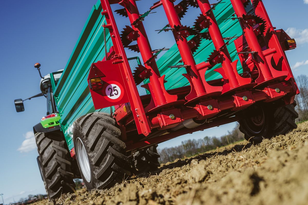Štirje pokončni trosilni valji s privijačenimi HARDOX® noži, pogon valjev je izveden preko kotnih gonil – zobniki gonil so v oljni kopeli, snemljiva trosilna naprava, širina raztrosa do 6 m.